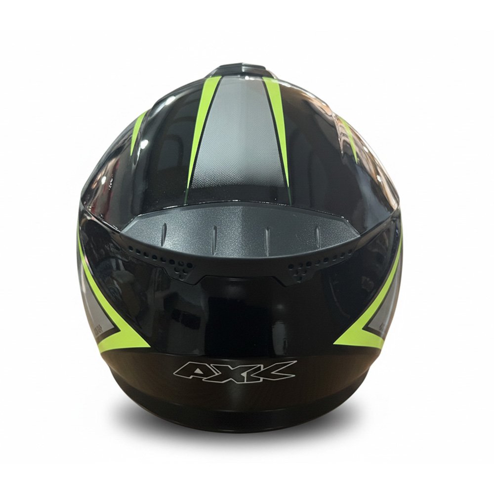 Ei helmet ta stylish look + strong safety er perfect combination. Glossy black body r neon green graphics biker der jonno ekta premium aggressive look create kore.