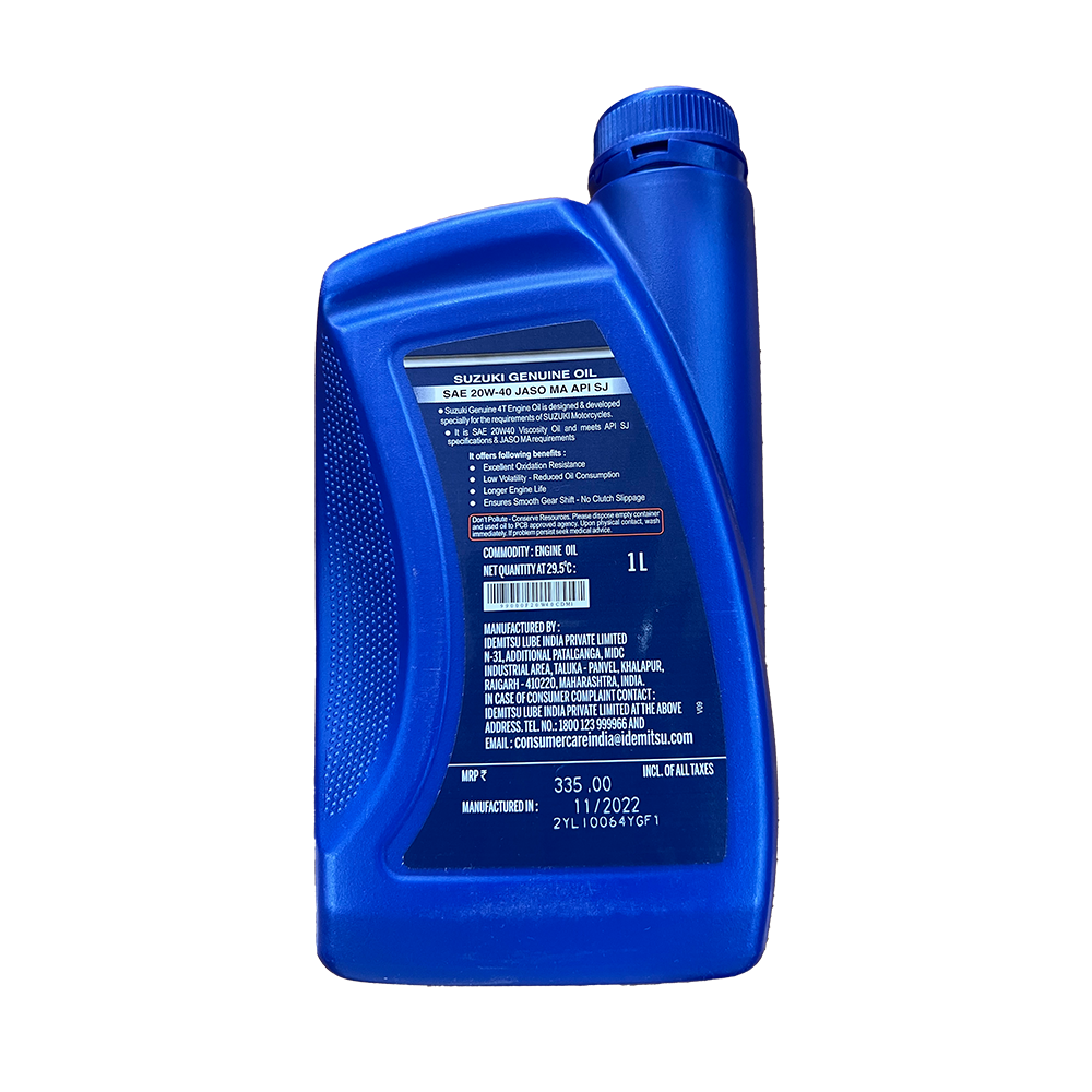 • Suzuki Engine oil – Recommended for Suzuki motorcycles for optimum performance and mileage. Available now at Suzuki dealers and service centers.